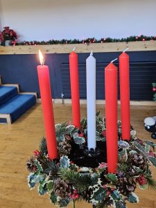 First Sunday of Advent. Beautifully decorated Church and 1st candle (Hope) lit this morning.